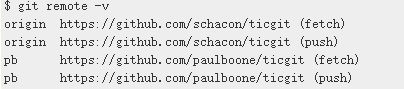 git remote add origin https://github.com/paulboone/ticgit列出所有的远端