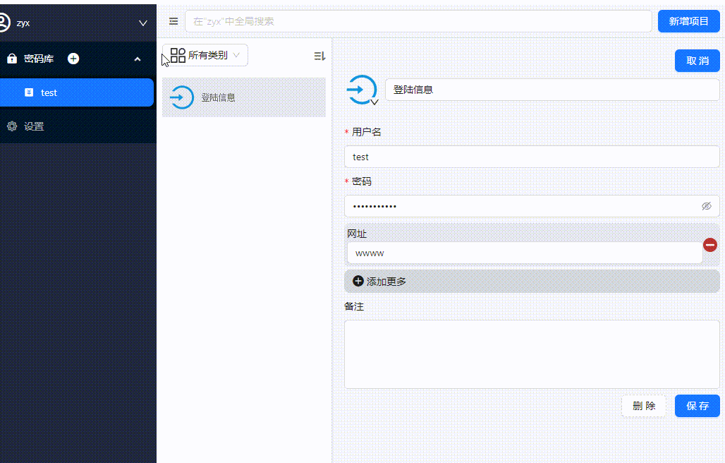 - 保险库功能: 将不同的密码信息分类保存