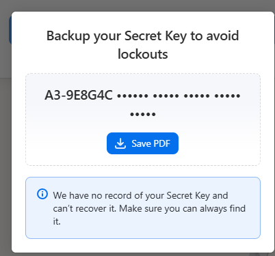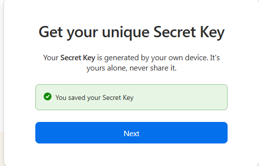 Secret key(即图中的 Account key)在且仅在本地生成,不会上传到服务器。