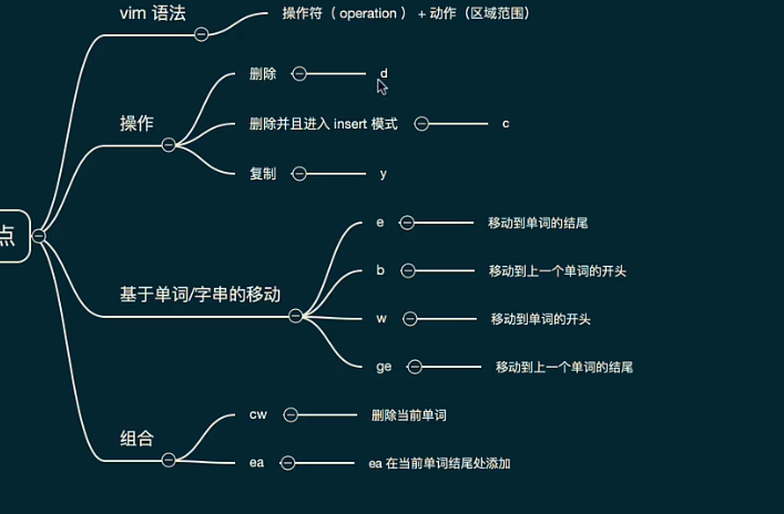 第一个字母是动作:c(修改) d(删除) y(复制)v选中