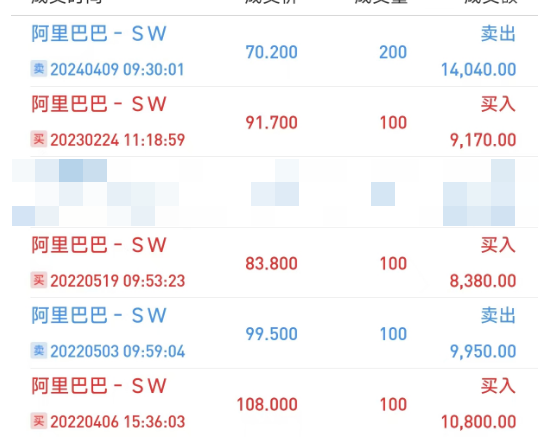 说起我与阿里巴巴这只股票,还颇有一番渊源。在港股市场,我购入的第一支股票(不包含打新)便是阿里巴巴。然而,我在这只股票上经历了两次进出,每次都自认为抄到了低点,可最终却不得不割肉离场。这一番折腾,白白耗费了将近三年的时间成本,实实在在地当了一回 “韭菜”。