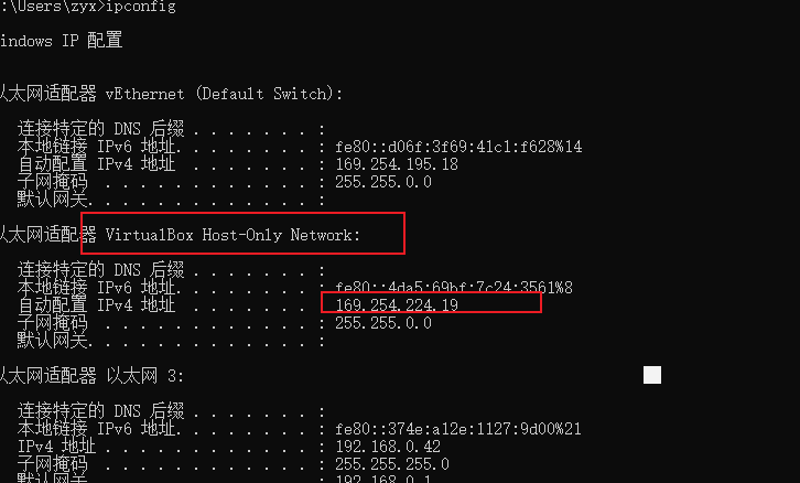 在windows上查看ipconfig
