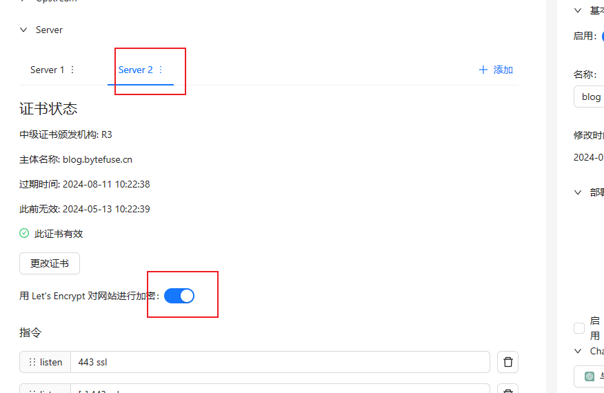 系统为会你增加一个server2,此时开始下方的let's encrypt加密