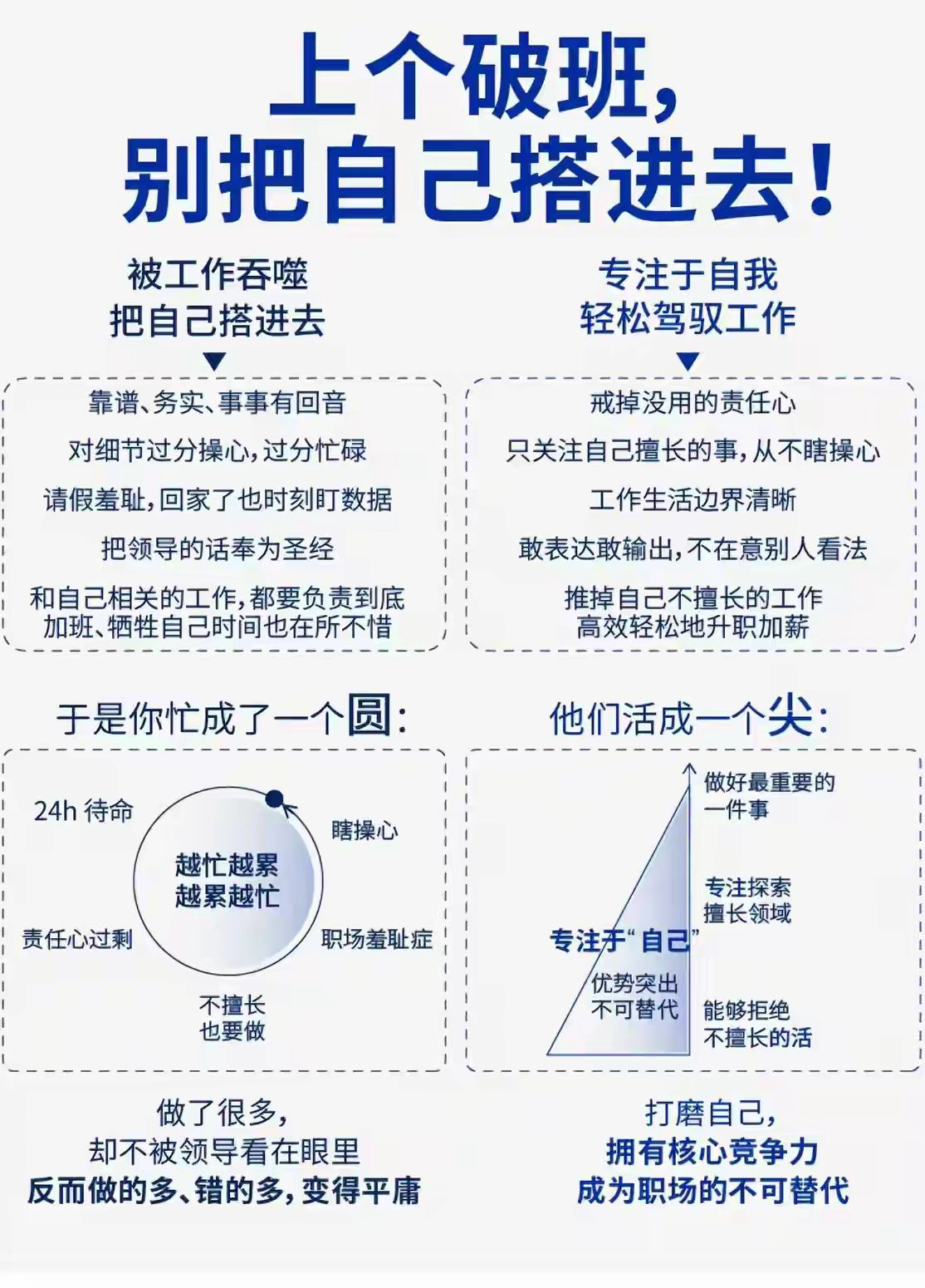 一对照,自己不就是左边那种吗,本想着为领导分优,领导安排啥不管自己擅不擅长,先接下来。搞得自己今天做这个,明天做那个,天天忙个不停。